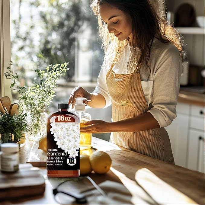 - Premium Gardenia Essential Oil: Enjoy the refreshing and soothing aroma of Gardenia Essential Oil, FRAOIL Gardenia Essential Oil is an upgraded and enhanced formula that has been sorted and bottled through a rigorous and standardized process to ensure the highest quality ingredients. Whether you use it for home aromatherapy or perfumery, this Gardenia essential oil will bring you a relaxing atmosphere.