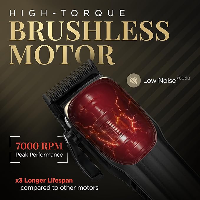 - BRUSHLESS MOTOR - The clipper's brushless motor delivers powerful, efficient, and quiet performance. With 3X the durability of other motors, it ensures consistent precision, making it ideal for salon use.
