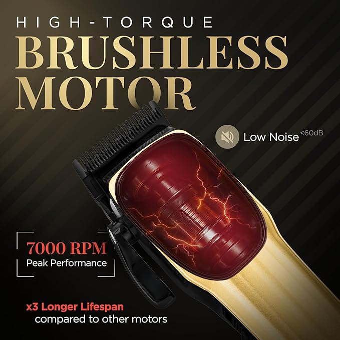 - BRUSHLESS MOTOR - The clipper's brushless motor delivers powerful, efficient, and quiet performance. With 3X the durability of other motors, it ensures consistent precision, making it ideal for salon use.