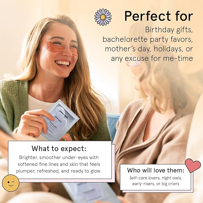 - Awesome Gifts for Glow-Getters - Whether you’re shopping for self care gifts for women, meaningful gifts for mom, or festive Christmas gifts, our under eye patches for dark circles are always a win. They make great stocking stuffers for teens and adults, and even fun white elephant gifts. Perfect as women’s gifts for birthdays, bachelorette bashes, or holiday surprises. Enjoy our 30-Day Feel Good Policy. If you're not 100% happy, just let us know and we'll make it right!