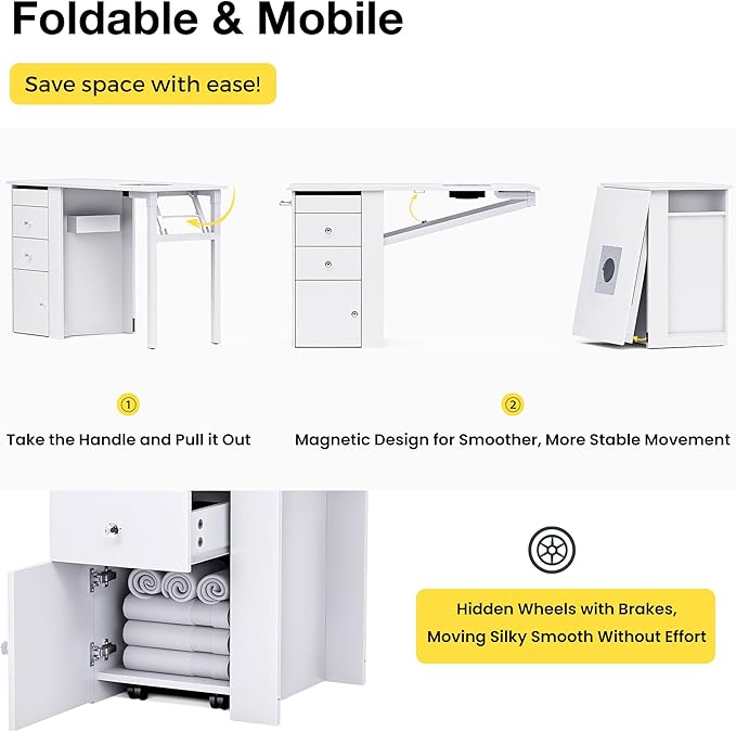 - 【Space-Saving Foldable Manicure Table】Save space effortlessly with this foldable nail table, perfect for small apartments, home studios, or professional salons. When not in use, simply fold it into a compact size that transforms into a stylish storage cabinet, blending seamlessly into any environment. Adjustable legs offer customizable height for a comfortable work setup.