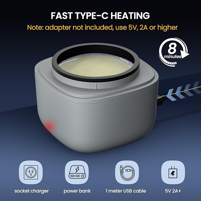 - Rapid Type-C Heating: Achieve full melt in just 8 minutes with 10g of crafting wax beans, thanks to the efficient Type-C USB system compatible with computers, power banks, and wall outlets
