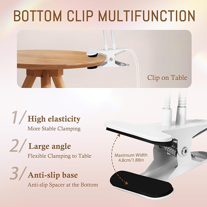 - 【GOOSENECK DUAL LED NAIL LAMP DESIGN】AORAEM LED lamp for gel nails made of aluminum alloy which has good durability, equipped with flexible gooseneck and securing clip, portable and flexible, can be 360° free adjustment, and the clip fixed smoothly, suitable for fixing to the bedside table, office desk, laptop desk, headboard, etc. A variety of ways to meet your different need.