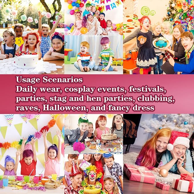 - 4 Vibrant Colors to Choose From-Available in 4 dazzling shades—red, green, blue and purple hair dye—you can express your unique style and stand out at any event. Plus, our customer service team is always ready to assist with any inquiries you may have.