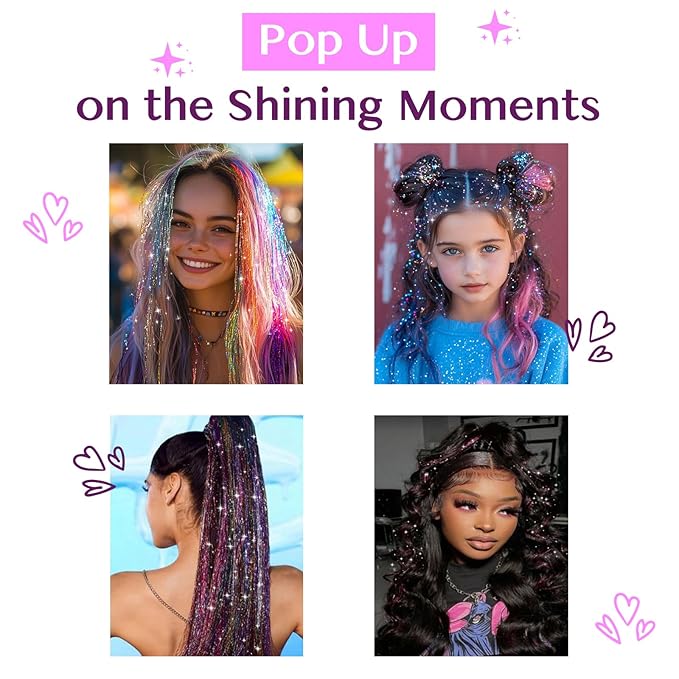 - Perfect Storage: Hair tinsel can be perfectly placed, our packaging box is a storage pull-out box, can be stored, it will allow your Tinsel to be reused and reused, and you don't have to worry about losing hair accessories any more.