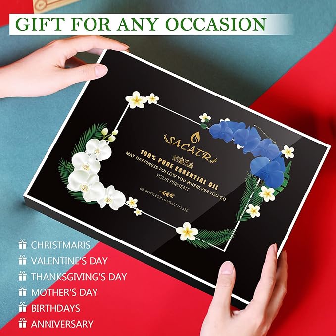 SACATR 60 Bottles Premium Essential Oils Set - Natural Essential Oils for Diffuser, Humidifier, Candle and Soap Making(60x5 ML)