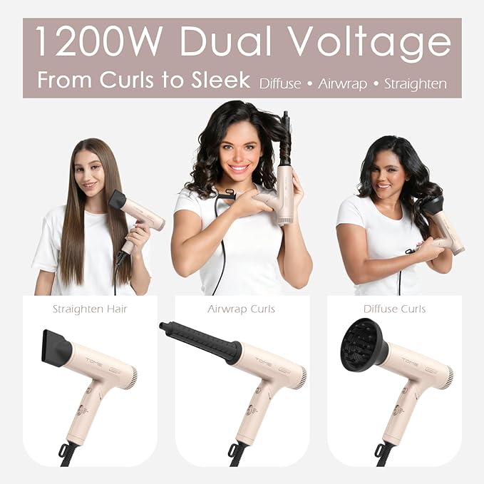 TOME 1200W Hair Dryer Travel Dual Voltage 120V/240V Foldable Blow Dryer with Diffuser Comb Nozzle Storage Bag Universal Power Adapter (Pink)