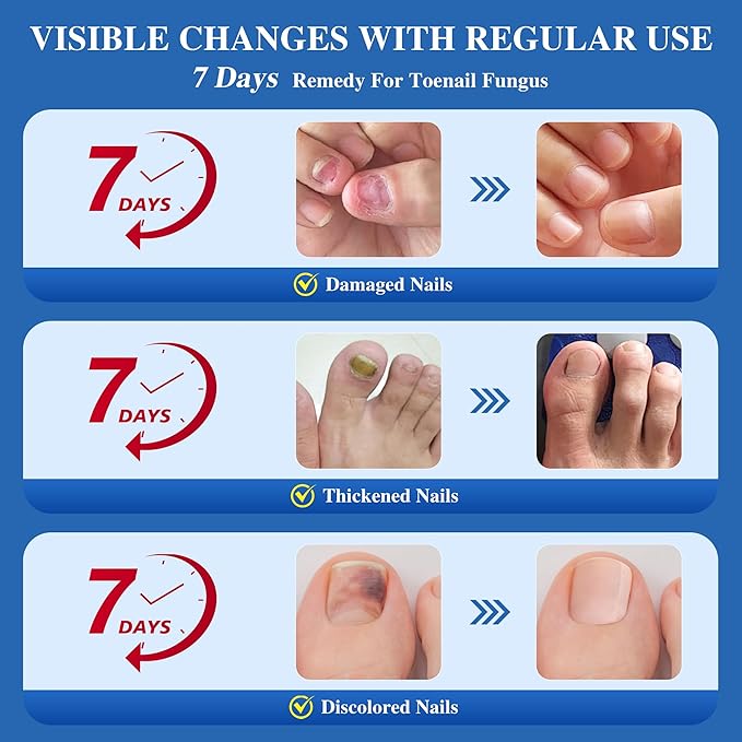 - 7-Day Fast-Acting Toenail Fungus Treatment: Our toenail fungus treatment extra strength formula delivers visible results in just 7 days. Designed to penetrate deeply, it effectively combats stubborn fungus nail treatment, restoring healthier, clearer nails with continued use