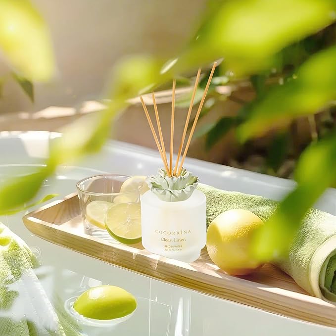 COCORRÍNA Gypsum Flower Reed Diffuser - Clean Linen Scent, 6.76 oz Oil with 8 Sticks, Long - Lasting Home Fragrance for Bathroom Décor