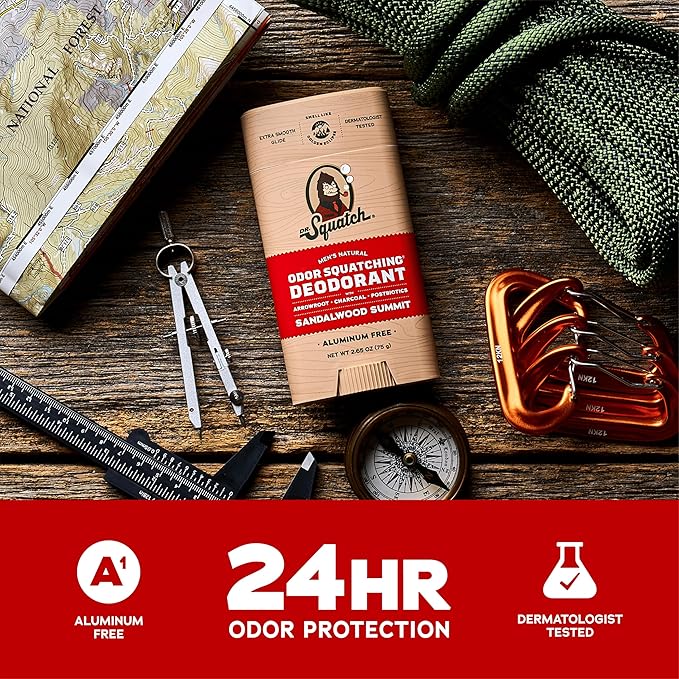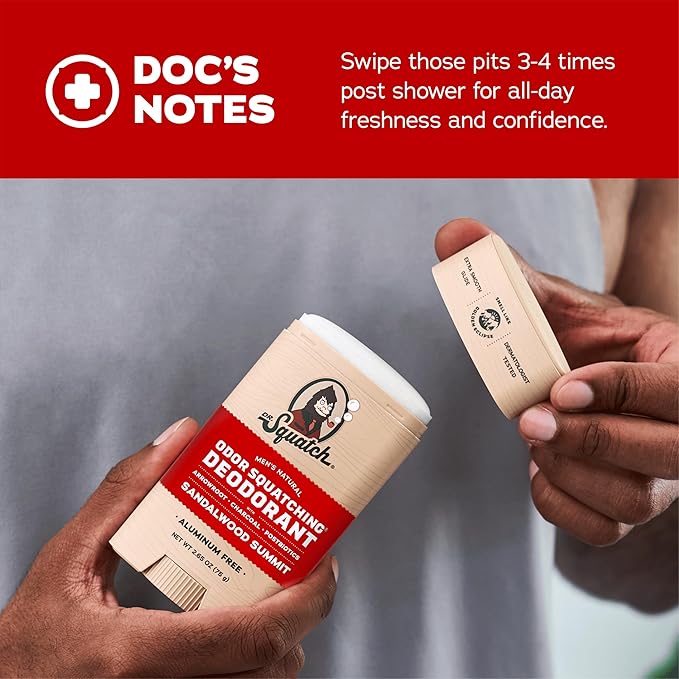 Dr. Squatch Natural Deodorant for Men - Odor-Squatching Aluminum Free - Sandalwood Summit (2.65 oz, 3-Pack)
