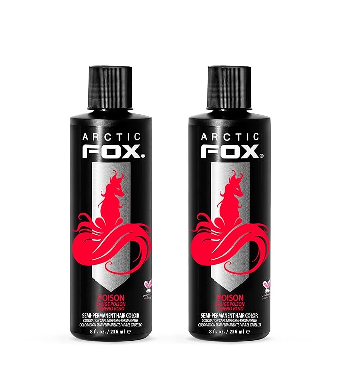 Arctic Fox Semi-Permanent Hair Dye, Vegan & Cruelty-Free, Vibrant Red Color, Ammonia-Free, Peroxide-Free, Conditioning Formula, For All Hair Types, Poison, 8 Fl Oz (Pack of 2)