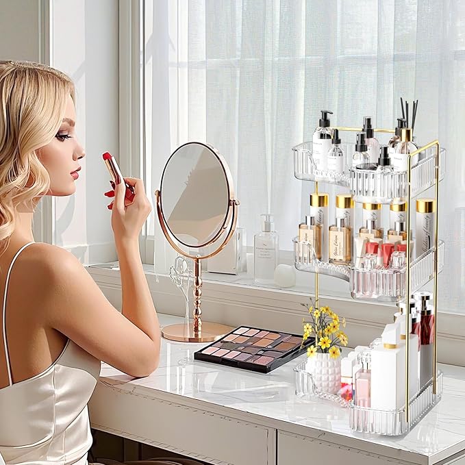 - [Multi-Purpose]: Multi-function Corner Bathroom Organizer for the bedroom is versatile and can be used as a dresser organizer, skincare organizer, bathroom cabinet organizer, makeup brush holder, spice rack organizer, bathroom tray, and more.