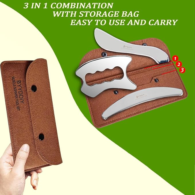 BYYDDIY 3 in 1 Stainless Steel Muscle Scraper Tools Set,Scraping Massage Tools for Physical Therapy,Derma Edge Massage Tool & GuaSha Massage Scraper Tool,IASTM Tools for Body (SXC)