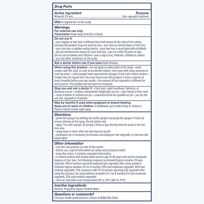 eSalon Hair Regrowth Treatment, 2% Minoxidil Topical Solution, 2.7 fl oz, One Month Supply, for Women