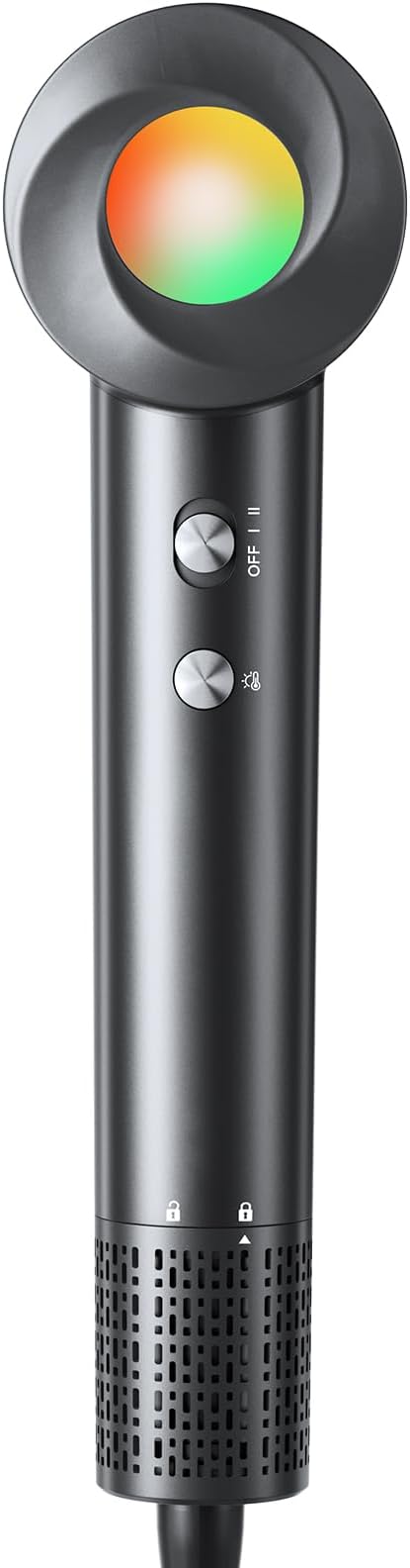 - Red (hot), orange (warm), and green (cool) indicators with one-button switching for customized drying and styling.