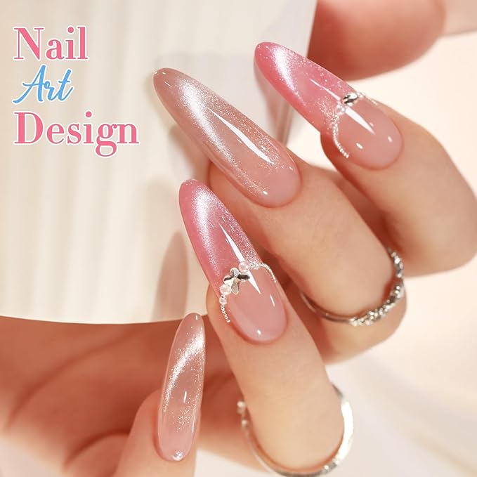 Double Rhythm Cat Eye Gel Nail Polish Set of 6 Same Color Same Bottle 0.5 Oz Shimmer Glitter with Magnet Holographic Reflective Magnetic UV Nail Polish Kit at Home (Silver Nude Pink-T6-42)