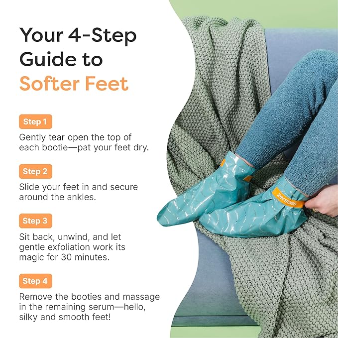 - Sheet-Mask for Your Feet – Unlike competitors with lotion-filled plastic booties, our feet masks for dry cracked feet feature branded foil booties with a lined sheet-like material for even serum coverage from ankle to toe, ensuring a mess-free, effortless application.
