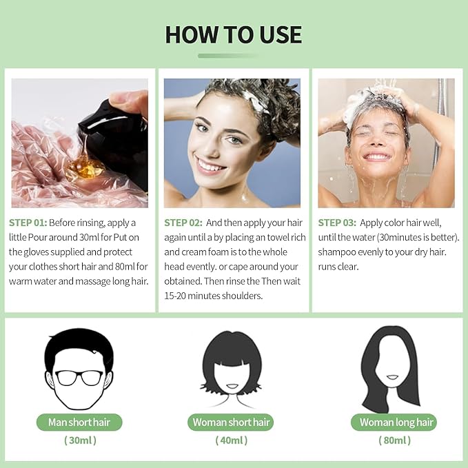 - Affinity Hair Coloring: Unlike traditional hair coloring products that may irritate and damage hair, our 3-in-1 hair coloring shampoo will not harm hair, helping to protect and strengthen hair during the coloring process, no need to worry about damaging hair.