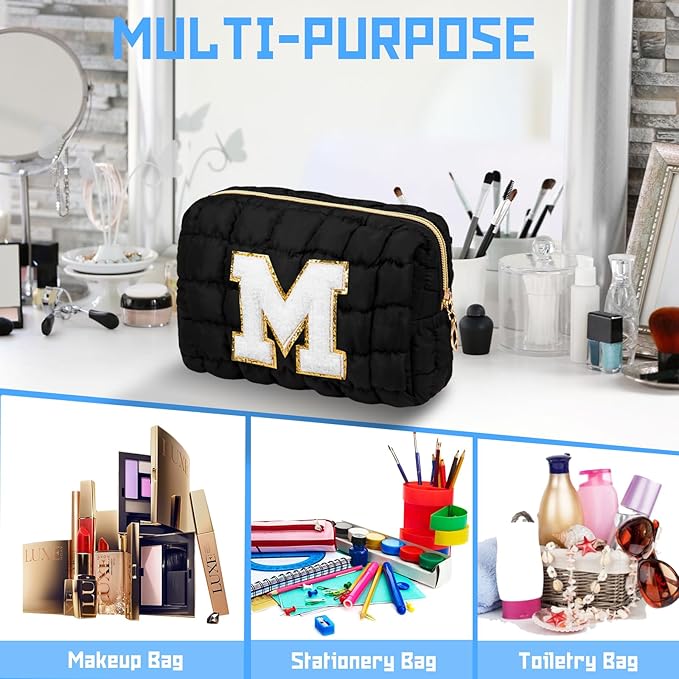 - Pillowy Texture Quilted Design: This monogram makeup bag is very cute. The unique design of the letter shape is very fashionable, hardware zippers & high quality cotton, elegance with makeup bag, featuring a chic quilted pattern and a soft pillowy texture, ensuring both style and comfort.