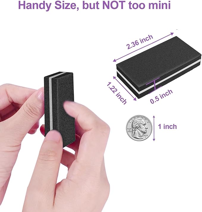 - PORTABLE AND CONVENIENT: With a compact size of 2.36” x 1.22”, our small nail buffers are easier to carry in your purse or bag if compared with other mini buffers, and so they are perfect for on-the-go use; whether you need a quick touch-up or a full nail buffing session, our nail buffer blocks are the perfect tool to do the job; and