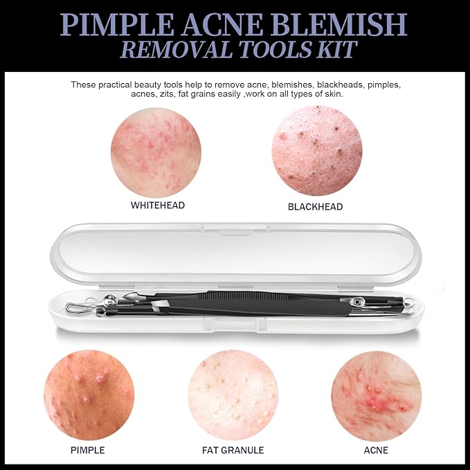 - Convenient and Organized: All tools come neatly organized in a washable plastic case, making it easy to transport and store. The blackhead tweezers feature a silicone cover for added safety, and it is advised to use the tools only when acne has fully matured to prevent skin irritation