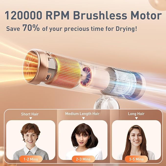 - High-Speed & Time-Saving: Quico hair dryers for women feature a 120,000 RPM high-speed motor that dries hair 7 times faster than standard dryers, slashing drying time by two-thirds. This helps you quickly style your hair on busy mornings.