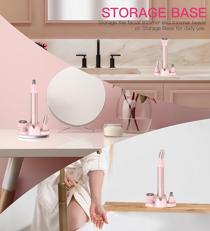 - Portable & Stylish Design: Groom on-the-go with this 3-in-1 facial hair trimmer. Its compact design fits easily in your purse or backpack, and comes with a convenient travel bag. Effortlessly switch between trimmer heads for versatile use on the nose, face, lips, chin, and eyebrows, making it the perfect beauty companion wherever you are. A must-have facial trimmer for women.
