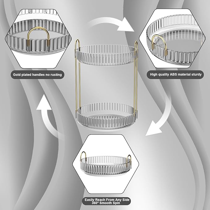 - [360°Rotating Makeup Organizer]- GTI bathroom organizers and storage have large capacity organizers and storage space, and add convenience to the 360° Swirl feature. No need to look for your beauty products in a messy drawer or a scattered desktop. Our makeup organizers can help you easily achieve it with a simple rotation.