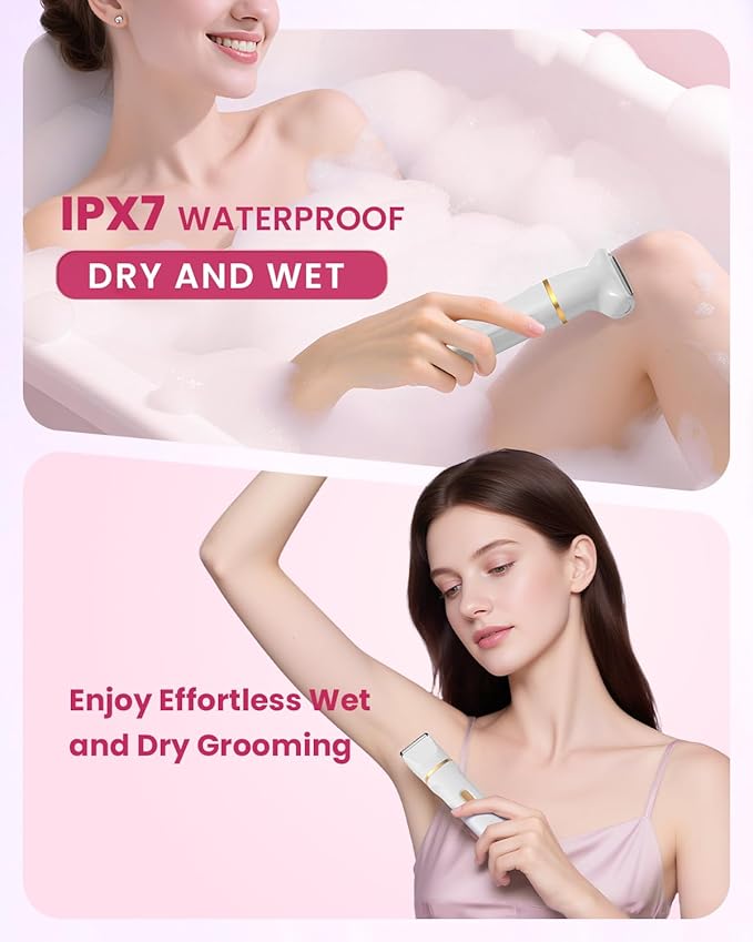 - 【Smooth And Painless Shaving】Our bikini trimmer is featuring hypoallergenic soft delicate ceramic blades,gives you a precise and smooth hair-shaving experience without the discomfort of skin pulling, irritation, injuries, and pain.Plus, Goose Bumps caused by hair removal will be a past, even for sensitive skin.