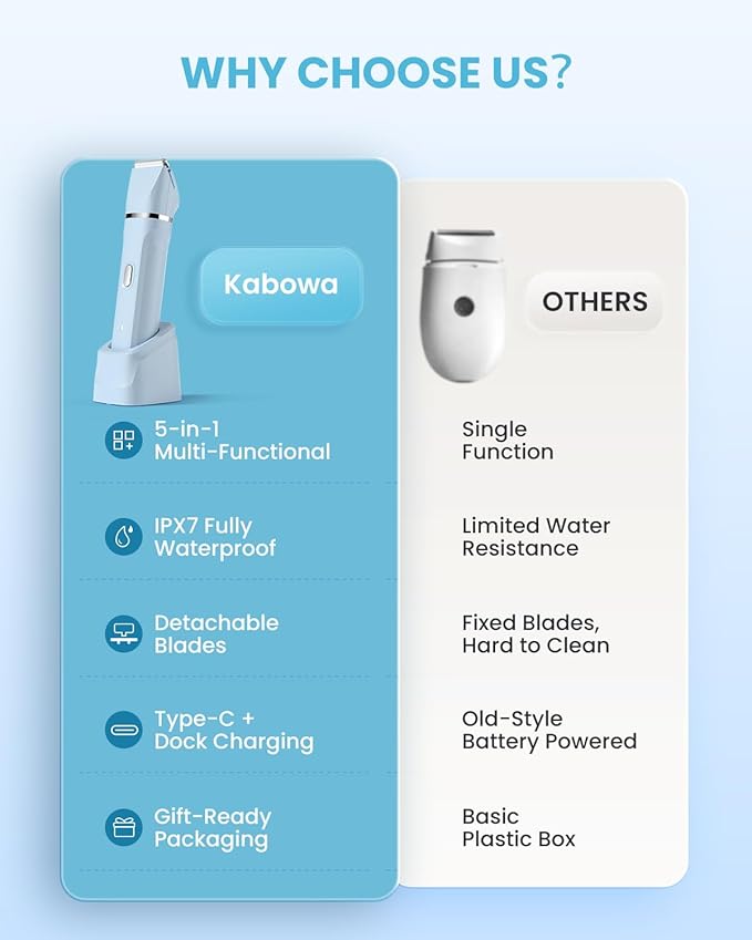 - 【Smooth And Painless Shaving】Our bikini trimmer is featuring hypoallergenic soft delicate ceramic blades,gives you a precise and smooth hair-shaving experience without the discomfort of skin pulling, irritation, injuries, and pain. Plus, Goose Bumps caused by hair removal will be a past, even for sensitive skin.