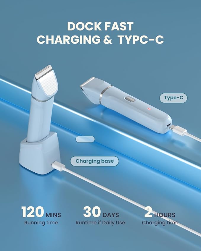 - 【Long-Lasting Battery】Our pubic hair trimmer is rechargeable and comes with a USB cable, carrying bag and wireless charging stand. The high-performance lithium battery provides longer life , bikini trimmer runs up to 90 minutes on 1.5 hours charge. Let’s enjoy extra portability with our lightweight trimmer