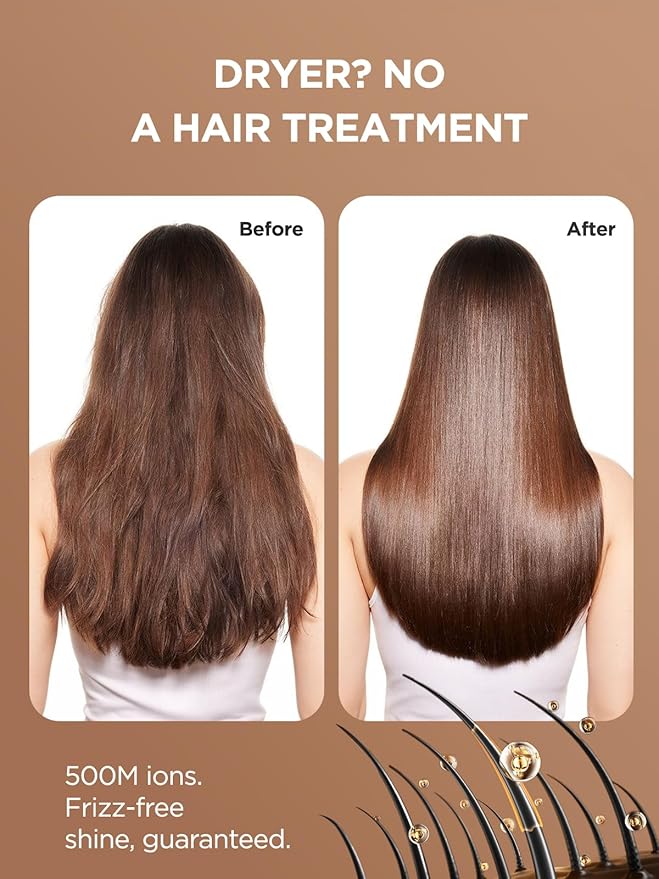 - 【RAPID DRYING FOR BUSY MORNINGS】Equipped with a 160,000 RPM brushless motor, this ionic hair dryer generates hurricane - force 36m/s airflow — 5X faster than basic dryers. Its aerodynamic design cuts styling time while reducing heat damage by 43% compared to conventional dryers.