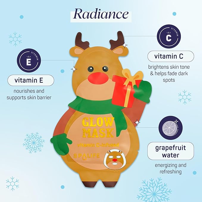 - RADIATE AND REFRESH WITH VITAMIN C — Radiance Reindeer energizes dull skin with vitamin C and grapefruit extract. This vitamin C mask promotes even tone and smooths for a healthy, radiant look. A perfect Christmas gift for coworkers or anyone on your list!
