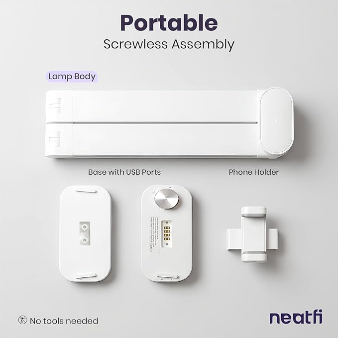 Neatfi LED Nail Tech Light, Desk Lamp for Nail Techs, Estheticians, Manicures, Facials, Threading, 40W, 3500 Lumens, Knob Control, Lampara para Mesa De Manicurista (with Charging Port, White)