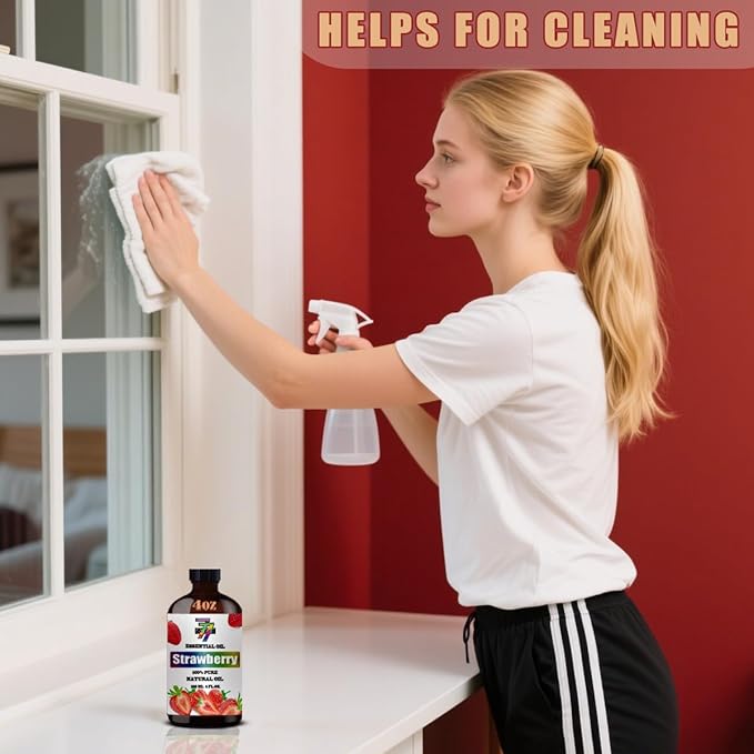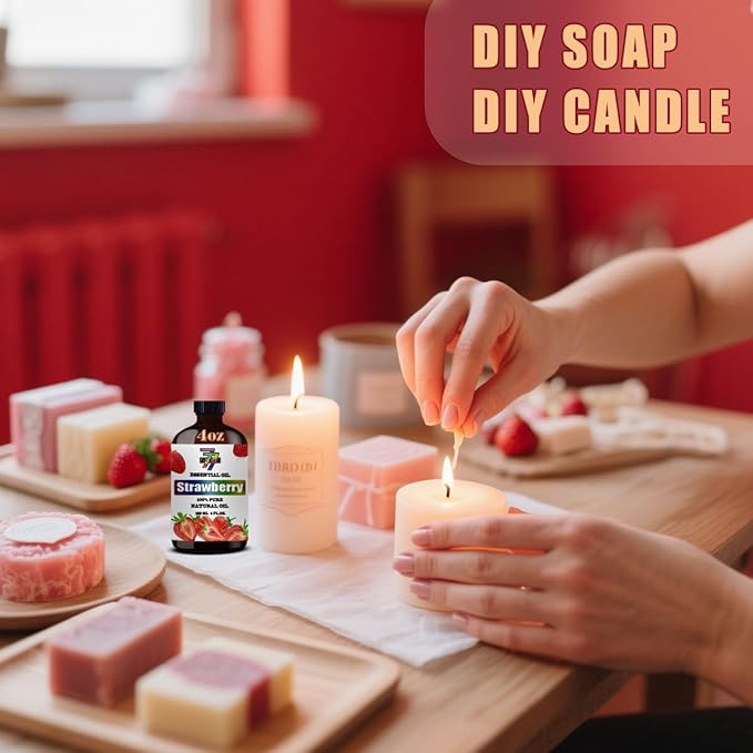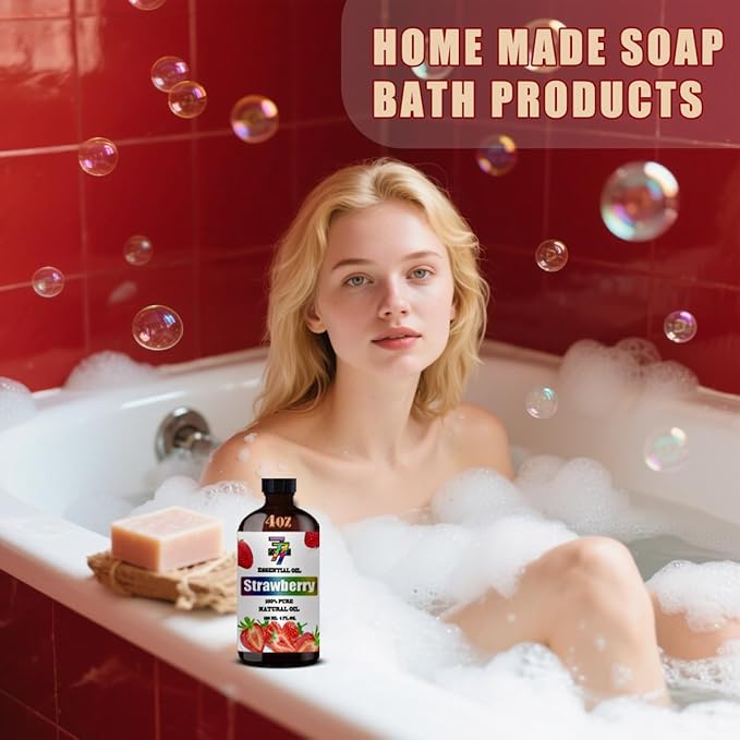 - PACKAGING: Enjoy our premium Strawberry Essential Oil in a large 4 oz (120ml) UV-protected amber glass bottle – specially designed to block harmful light and preserve the oil's natural fragrance. The leak-proof dropper cap ensures mess-free use while locking in freshness. This generous size offers exceptional value compared to standard 1 oz bottles.