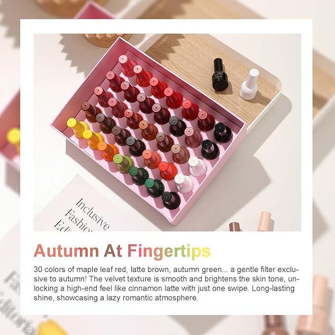 - Non-Toxic & Nail-Friendly Formula: This gel polish set Infused with plant extracts and 12-Free ingredients (No Formaldehyde, Toluene, etc.), gently protecting natural nails from damage and yellowing.