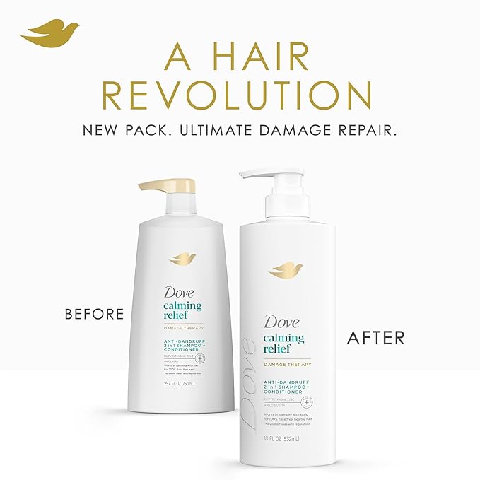 - DOVE SHOWER ESSENTIALS: The Dove DermaCare Calming Relief 2-in-1 Shampoo and Conditioner (18 oz) and hypoallergenic Body Wash for Sensitive Skin (20 oz) are the ultimate duo for soothing your irritated scalp and skin.