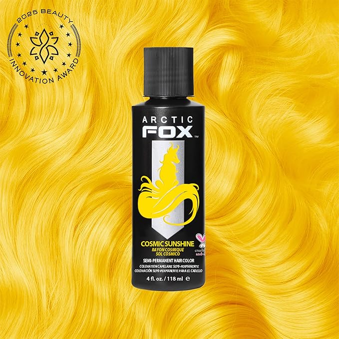 Arctic Fox Semi-Permanent Hair Dye, Vegan & Cruelty-Free, Vibrant Yellow Color, Ammonia-Free, Peroxide-Free, Conditioning Formula, For All Hair Types, Cosmic Sunshine, 4 Fl Oz (Pack of 2)