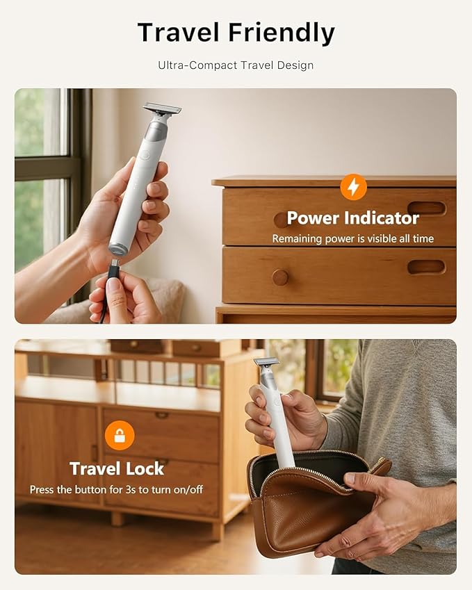 - 【Highly Efficient, USB-C Fast Charging】Equipped with a USB-C cable Our Rechargeable electric razor for men can be charged at home or on the road, perfect for your daily routine and for travel. Our hair trimmer for men fast charging in 30-minutes gets 120-minute runtime.A travel lock helps reduce accidental powering on of the device, so your trimmer is fully juiced when you arrive at your destination. Press and hold the lock button for 5 seconds to engage/ disengage.