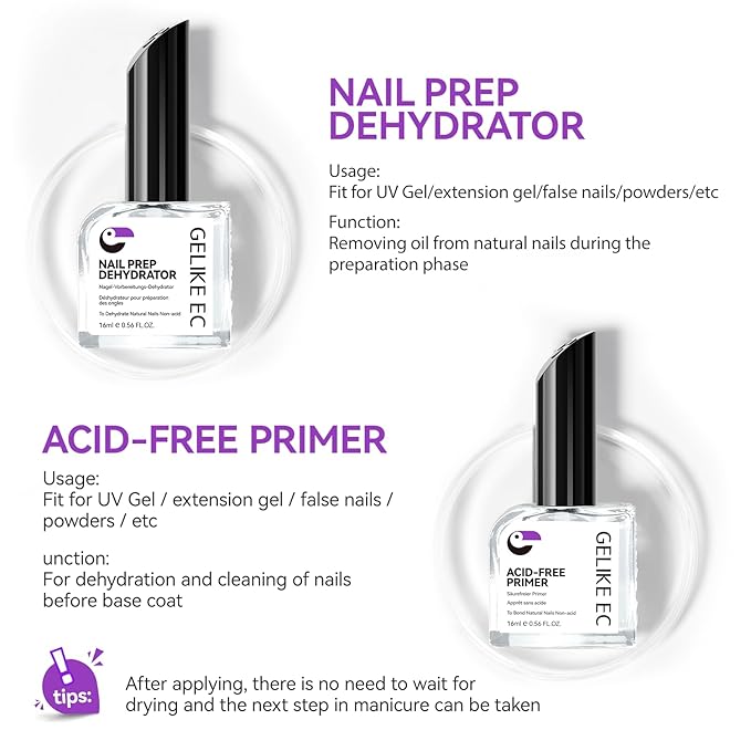 - Repairs Weak & Damaged Nails – Stronger in Days! This nail dehydrator & primer kit is specially designed for thin, brittle, or damaged nails! The prep liquid removes oils and moisture, while the acid-free primer bonds gel, acrylic, and polish without further weakening nails. Perfect for salon manicurists restoring clients' natural nails—strengthens while prepping!
