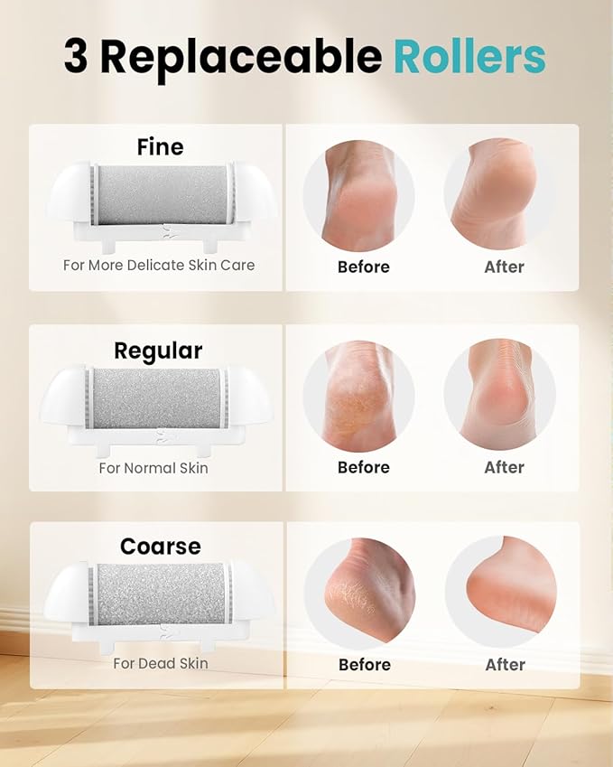 - Pro Rollers, Precise Finish: Swap coarse/medium/fine heads to match your skin. Pro grinding with interchangeable files works as a file grinder sander for heels and soles—an effective remover for stubborn calluses