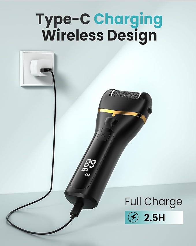 - USB Type-C Charging & Portable Design: Quickly recharge using USB Type-C, with built-in protections to prevent overcharging. Its portable design is great for travel or on-the-go foot care—perfect for the summer season and beyond. No communication or RF involved.