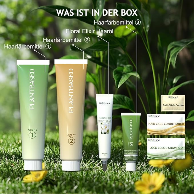 - SALON-INFUSED PERMANENT COLOR + CARE SYSTEM: Plant-serum powered at-home kit crafted by color chemists and stylists. Permanent hair dye in 20 minutes. KIT INCLUDES Radiant Cream Color, Floral Hair Essential Oil, Lock Color Shampoo, Hair Care Conditioner, Gloves, Shoulder Wrap, Ear Muffs, Hair Cover, Dyeing Comb.