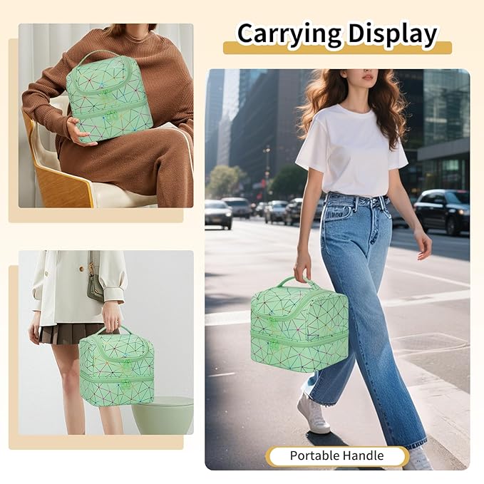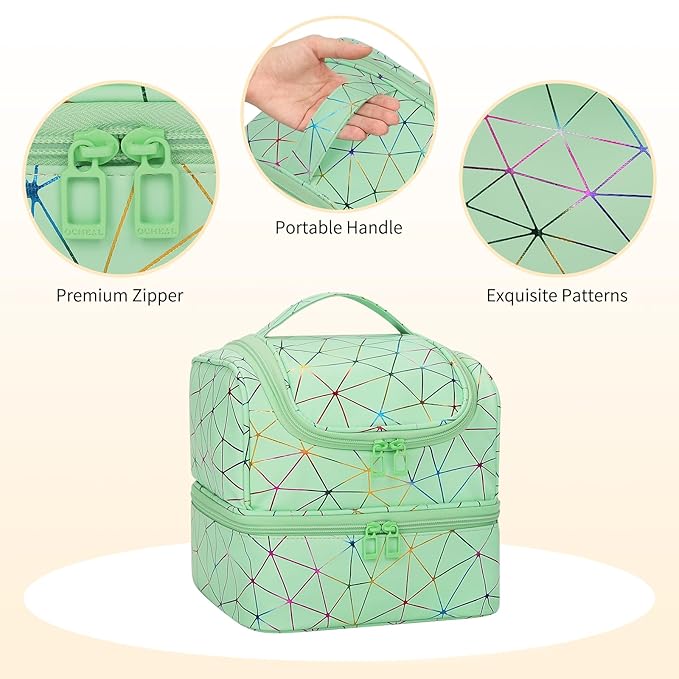 CUBETASTIC Nail Polish Organizer, Cute Nail Tech Organizers And Storage Bag Holds 45 Bottles & UV Nail Lamp, Compact Double-Layer Travel Nail Supplies Case for Nail Kit (Triangle Green, 27 Slots)