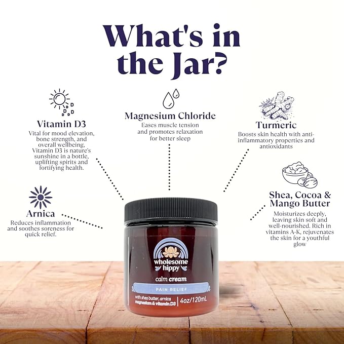 Wholesome Hippy Magnesium Calm Cream – All Natural Body Butter with Magnesium, Vitamin D3, Arnica & Turmeric – Soothing Moisturizer for Skin Wellness & Relaxation – 4oz