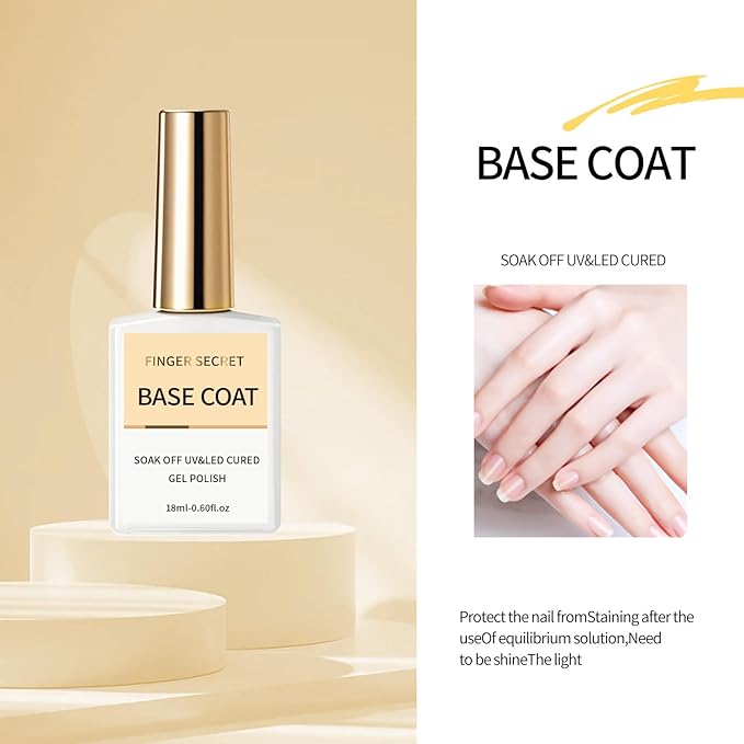 - Finger Secret Base Coat:1 Finger Secret fast drying nail polish nail glue liquid of 18ml-0.60fl.oz, suitable for gel top coat, rapid extension gel, nail strengthening gel variety of nail care simplify the manicure process.