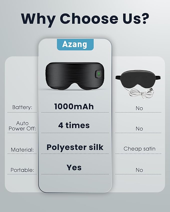 - 【Fast and Even Heating】This eye mask uses advanced metal fiber heating material, ensuring quick and even heating. It helps promote eye blood circulation, relieve eye discomfort, and improve sleep quality, especially for those facing overtime work, late-night activities, long-distance travel, or intense study sessions.