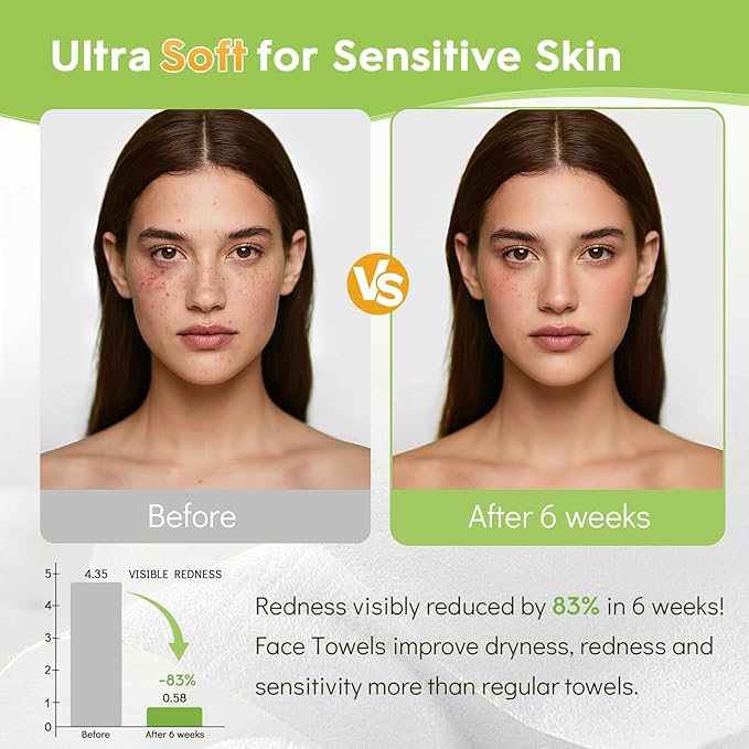 - ALL SKIN TYPES: Face Towel Wash Cloth contains zero synthetic fibers or harsh-chemicals, is Naturally Odor-Free to help less irritation, and to reduce red-ness for Sensitive Skin.