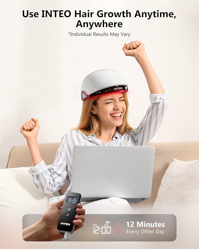 - 【INTEO Hair Growth Anytime, Anywhere】Wireless design, you can wear it and move it anywhere, without being restricted by location and space. It has infrared sensing function and can only work when worn correctly. It will automatically stop working when it leaves the scalp to protect your eyes.