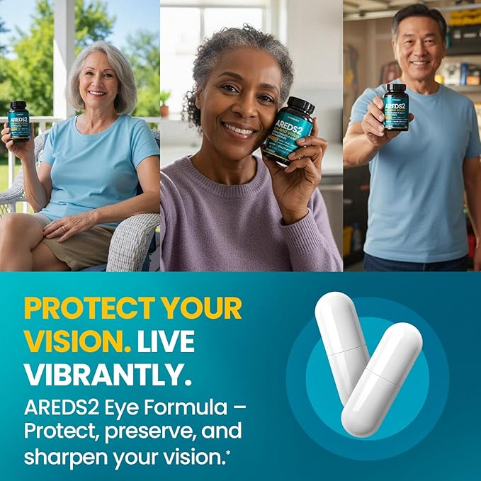AREDS 2 Eye Vitamins - Lutein, Zeaxanthin, Bilberry, Astaxanthin Mineral Vision Supplement - Supports Eye Strain, Dry Eyes, Pressure, and Vision Health - Made in USA - 60ct